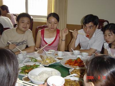 結(jié)束了路途的奔波,大伙兒該好好飽餐了。其實(shí)真不是這魚這肉好吃得不得了呀,只是此清遠(yuǎn)一漂,TMD說不準(zhǔn)就漂到何方做了美人魚,有得吃就多吃點(diǎn)吧,可以笑的時(shí)候就盡量逼真吧,日后的事......哎!兄弟姐妹們,開動(dòng)吧!