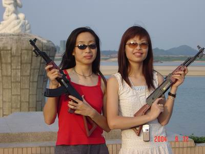 是驚訝?是驚奇?還是驚嚇?原來商科的MM戴上墨鏡,挎上個(gè)塑料槍,擺個(gè)酷POSE也可以這樣的!如果來個(gè)AK-47后果會(huì)怎樣~~~