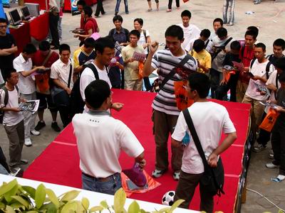 不一會(huì)整個(gè)會(huì)場(chǎng)就熱鬧起來(lái)了,在眾多的參展攤位中,以商科的攤位吸引了最多少男少女的眼光