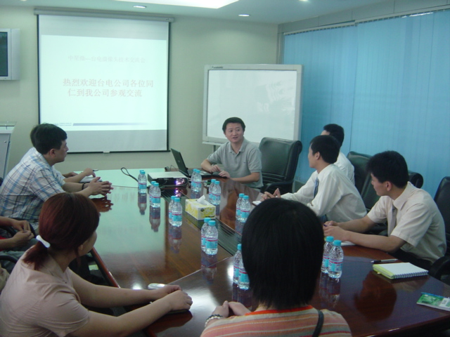 會議地點設在北京中星微電子總部,看。。。。。。門口還擺著歡迎牌。。。。不錯不錯。。。。。中星微的前臺妹妹那么認真地在看什么呢?嘻嘻。。。。 (圖2) 臺電科技和中星微電子代表、以及北京一流渠道商代表在中星微電子北京總部會議室進行三方親切會晤,就三方在今后的市場發展的道路上和新技術應用等多方面戰略合作上,進行深刻地交流。 (圖3) 會后,在中星微電子代表的引領下參觀了中星微電子有限公司。看。。。。。咱們同仁正認真聽講解員妹妹細微動人的解說。。。 (圖4) (圖5) 中星微芯片在機器人上的應用 噢。。。這個是什么東東,,,俺還是第一次看見款設這么奇特的產品。。這個我要認真問清楚解說員妹妹才告訴你們。。。。 (圖6) 秉承商科集團的精神,志存高遠,腳踏實地。 (圖7) 美好的瞬間,靚照的留念。 (圖8)