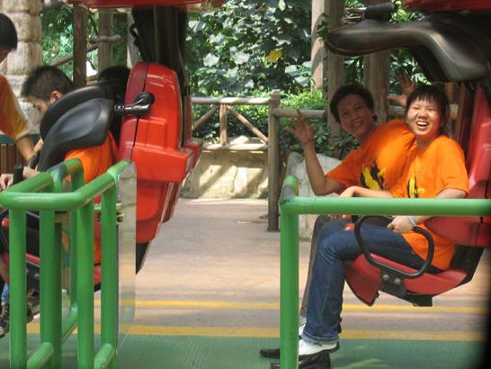 歡樂谷招牌項目:太空梭,你看中間那位帥哥是多么忐忑不安