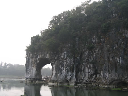 象鼻山地處桂林市的漓江與桃花江匯流處,園內(nèi)自然山水與人文景觀交相輝映,山、水、洞、亭、臺、坪,文物古跡相映成趣,美不勝收。因為象山酷似一頭大象,栩栩如生,因此被人們定為桂林市的象征。象山山體前部的水月洞彎如月亮,穿透山體,清澈的江水從洞中穿鼻而過,波光洞影構成了“水底有明月,水中明月浮”的奇景,“象山水月”因此成為桂林山水一絕。