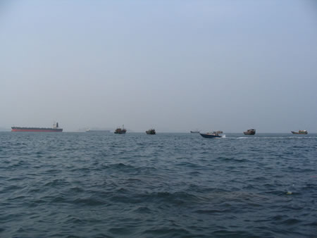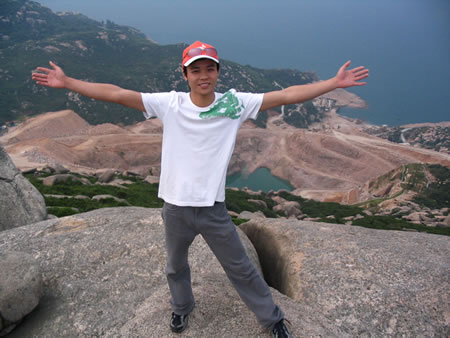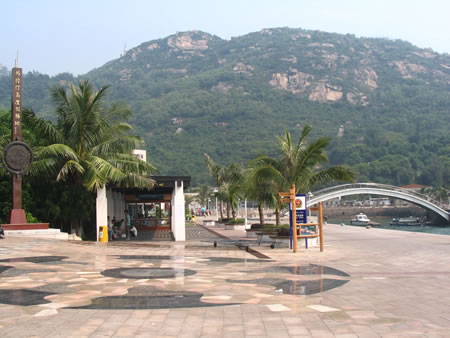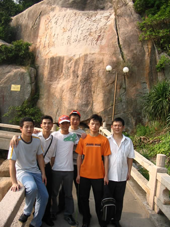 歡呼聲中我們踏上了十一之旅,來到富有豐富人文、歷史景觀的外伶仃島,外伶仃島離香港長洲島只有6海里,主峰伶仃峰高達311.8米,是萬山群島最高峰。站在伶仃峰可清楚的觀望香港的景色(如太平山、青馬大橋等香江景物)。天氣晴朗不起霧的時侯,清晨在山頂?shù)群蛱枏拇蠛5牡仄骄上跳出,冉冉升起,整個洋面一片金黃,霞光萬丈,美不勝收,真是一大奇景可惜我們這次沒有看到此景!!!!伶仃洋上最有影響,千古傳誦的是文天祥“人生自古誰無死、留取丹心照汗青”這一千古絕唱。這是毛澤東主席生前手書的文天祥《過伶仃洋》詩的石刻。