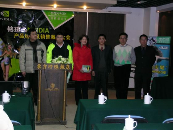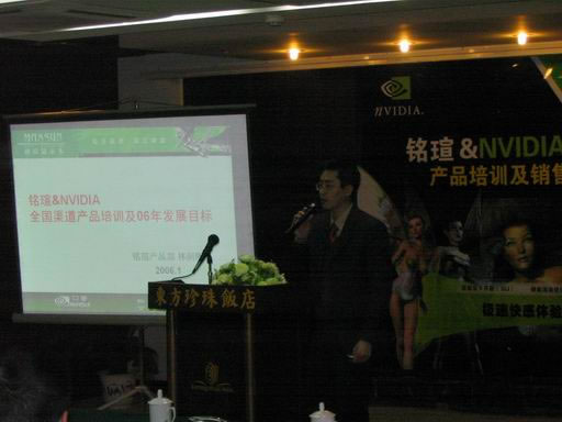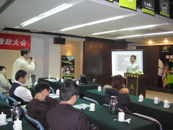 2006年1月5日,繼銘瑄&NVIDIA全國產品培訓及銷售激勵大會在深圳、成都成功落幕之后,再次到會六朝古都——南京。會議現場到會嘉賓包括NVIDIA高級渠道銷售經理陳祖旋先生,商科集團銘瑄品牌經理林潤輝先生,商科集團南京分公司總經理熊明先生,以及眾多經銷商。大家就過去一年的合作做了全面總結,并著重關注了來年規劃,對于來年大家均持樂觀積極的展望態度,銘瑄和NVIDIA也表達了加強合作的意愿。