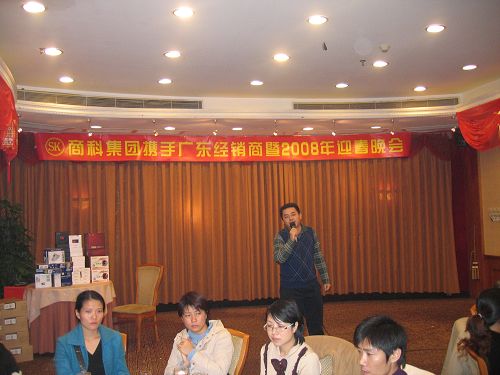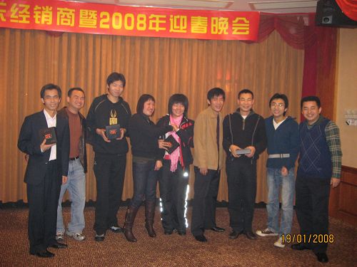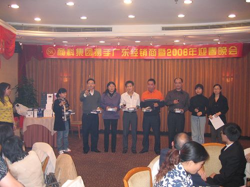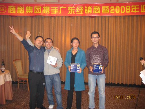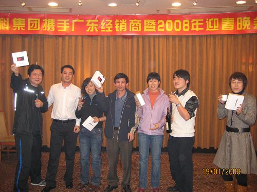 商科廣州分公司為了答謝經銷商在過去的一年中給予的支持和厚愛,于1月19日在同甘同味酒店舉辦了"商科集團攜手廣東經銷商2008年迎春晚會"。參與本次迎春晚會的嘉賓有商科集團董事長孫武源先生、商科集團副總經理劉險峰先生、商科集團廣州分公司經理 李小剛先生、商科集團市場部經理 陳濤女士、商科集團臺電外設事業部產品經理 呂家起先生以及70多位遠道而來的廣東省經銷商代表們。
