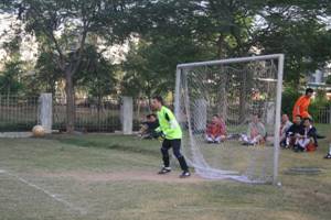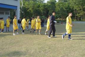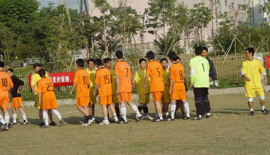近日,商科足球隊應邀去參加一場足球友誼賽,3點半到達目的地,換好隊服,做做準備活動擺擺陣勢。看,商科的小伙子各個精神抖擻,雖是客場做戰,氣勢也不讓分毫。悄悄的說,老總親自帶隊自然底氣十足。再看,主場的帥哥也不耐,各個摩拳擦掌躍躍欲試。看樣子今天的比賽頗有看頭。
