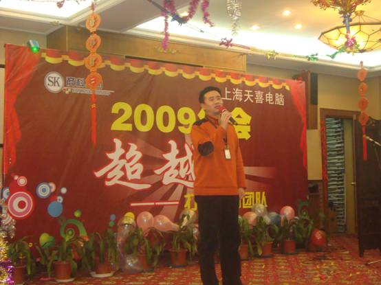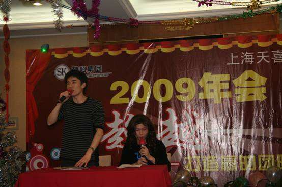 2009年12月23日,商科集團上海天喜公司送走09,迎來10。這次年會以“超越——打造贏的團隊”為主題,超越寓意在于——超越競爭對手、超越過去取得的成績、超越自我。晚會還未開始,就看到臺下一個個翹首以待。