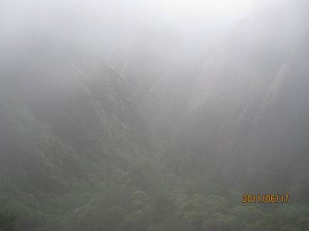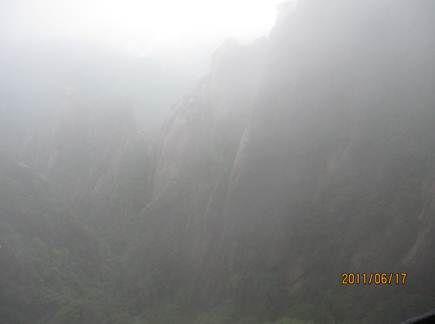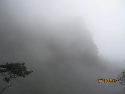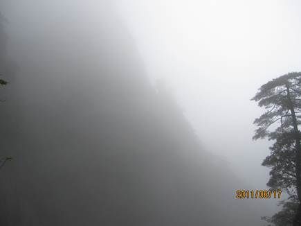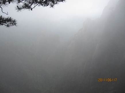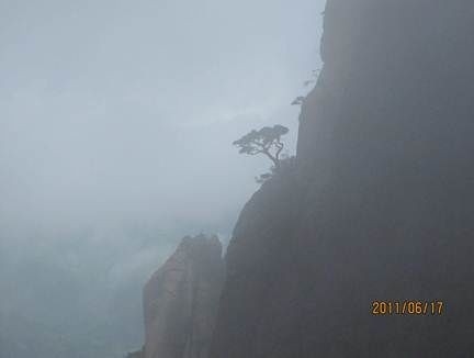 那天的三清山,由近而遠,霧色漸濃,仿佛進入仙境。近處的松,清晰可見,遠處的山巒在霧中若隱若現(xiàn),時節(jié)已進入盛夏,山上仿佛依然初春。涼涼的風(fēng),輕輕地吹著薄薄的雨衣,靜靜地感受著風(fēng)吹雨衣的聲音,柔柔的呼吸著大山中的有氧離子,心里頓時得到釋放。
