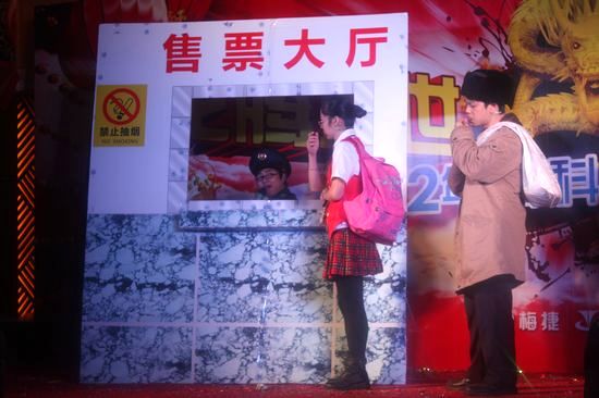 接下來是技術(shù)部的同事為大家?guī)淼膬蓚小品《賣票》和《雞同魚講》