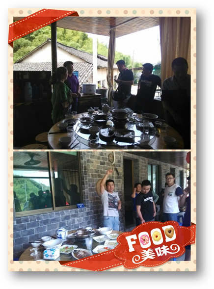 經(jīng)過三個(gè)半小時(shí)的車程,中午時(shí)分,終于來到了第一天的目的地---龍王山峽谷漂流。當(dāng)然啦,對(duì)于一群吃貨而言,漂流之前肯定得飽餐一頓啦,為此,我們選擇了當(dāng)?shù)馗浇囊患肄r(nóng)家樂,吃上了健康的有機(jī)綠色食物。在安吉,竹筍是每家每戶每餐必不可少的一道菜,在旅途的這兩天中,我們每餐的竹筍都是不一樣的,做法吃法各式各樣,但頓頓都是極其美味,極受歡迎,LOOK,我們上分都是“光盤”一族哦,表?yè)P(yáng)表?yè)P(yáng)~~~