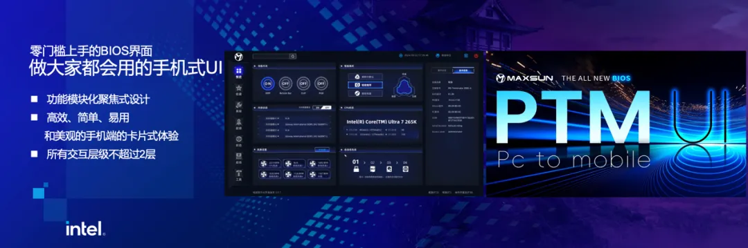 在會議上,銘瑄主板總經理王榮還跟大家介紹了銘瑄全新的PTM UI BIOS。這款全新的BIOS達到了全方位的升級,創新地洞察當前移動端對用戶瀏覽習慣的影響,采用PTM設計理念(PC To Mobile),將功能模塊化聚焦式設計,所有交互層級不超過2層,解決了以往交互繁瑣的問題,使BIOS體驗兼具簡潔、高效、易用,大幅提升交互感受。